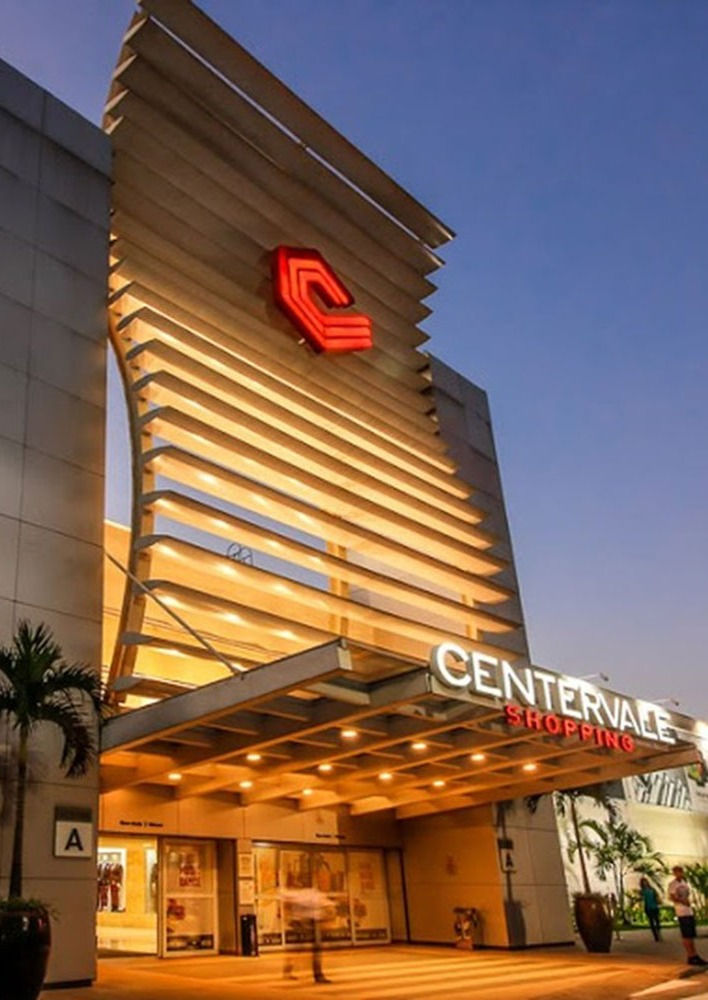 Projeto de ampliação da área do Shopping Centervale em São José dos Campos, próximo ao estacionamento vertical. A fachada utiliza painéis de alumínio composto em tons de cinza e vidro, proporcionando modernidade e transparência. Grandes aberturas garantem iluminação natural e integração com o entorno, enquanto detalhes em luzes LED destacam a arquitetura à noite