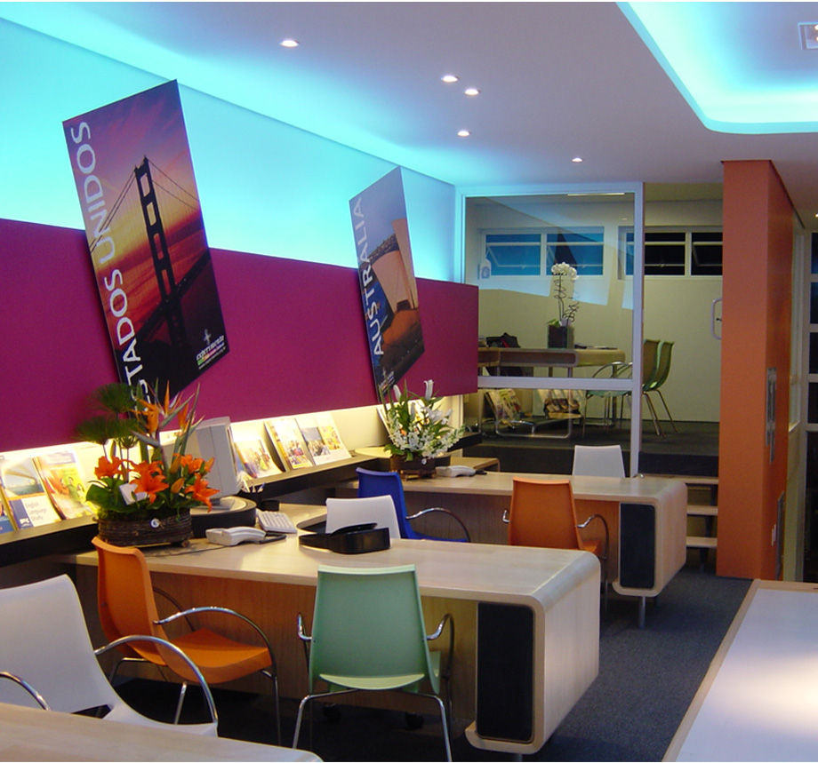 Projeto de arquitetura de varejo para loja de intercâmbio com forte impacto visual, enfatizando peças coloridas e formatos inusitados. Ambiente jovial e descontraído, oferecendo experiência de compra agradável e personalizada.